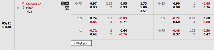 Tip kèo Châu Á full trận Granada vs Eibar