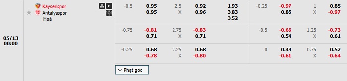 Tip kèo Châu Á hiệp 1 Kayserispor vs Antalyaspor