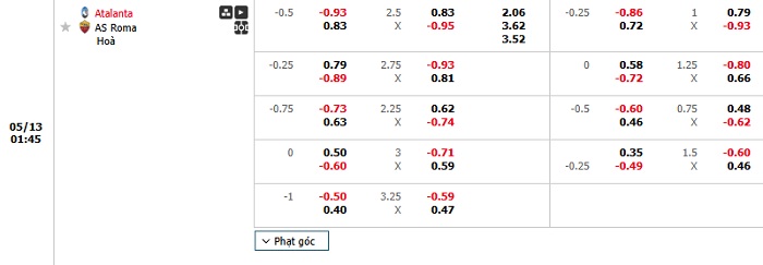 Tip kèo Châu Á full trận Atalanta vs Roma