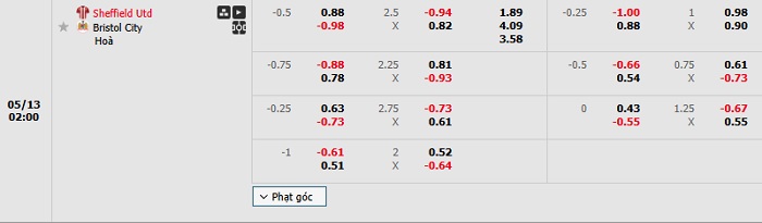 Tip kèo Châu Á hiệp 1 Sheffield United vs Bristol