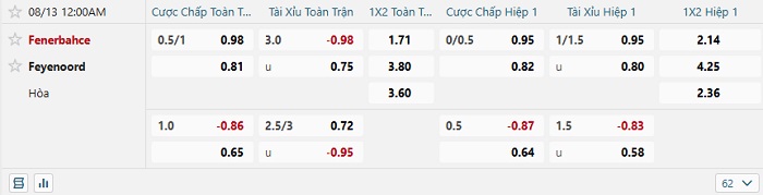 Tip kèo Châu Á hiệp 1 Fenerbahce vs Feyenoord