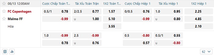 Tip kèo Châu Á full trận Copenhagen vs Malmo