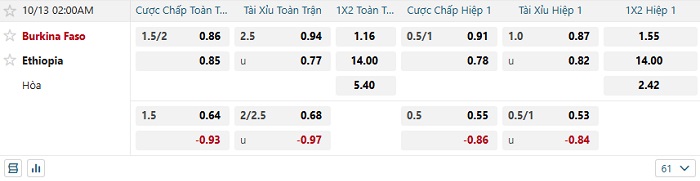 Tip kèo Châu Á hiệp 1 Burkina Faso vs Ethiopia