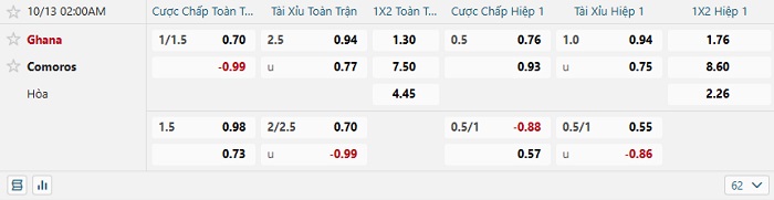 Tip kèo Châu Á hiệp 1 Ghana vs Comoros