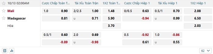 Tip kèo Châu Á hiệp 1 Mali vs Madagascar