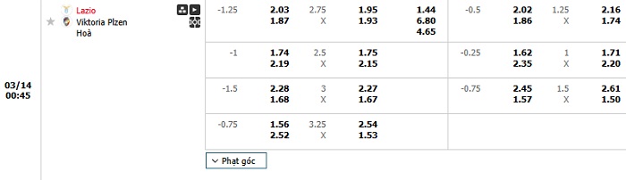 Tip kèo Châu Á full trận Lazio vs Plzen