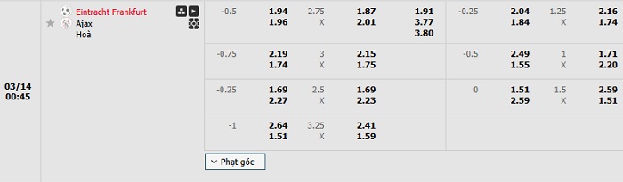 Tip kèo Châu Á full trận Frankfurt vs Ajax