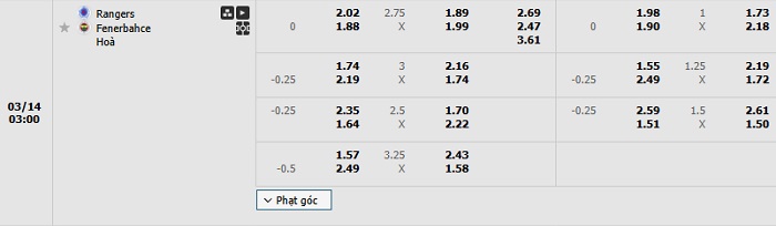 Tip kèo Châu Á full trận Rangers vs Fenerbahce