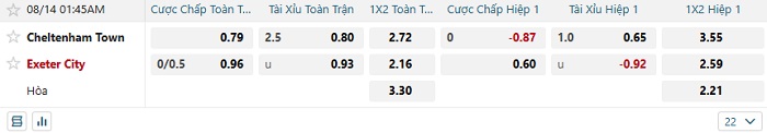 Tip kèo tỷ số Cheltenham vs Exeter City