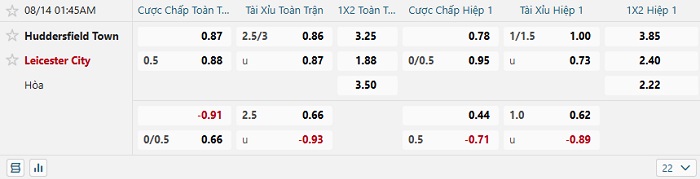 Tip kèo Châu Á full trận Huddersfield vs Leicester
