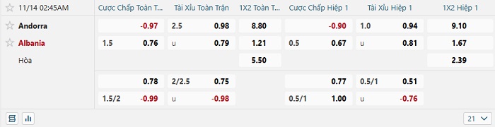 Tip kèo Châu Á full trận Andorra vs Albania