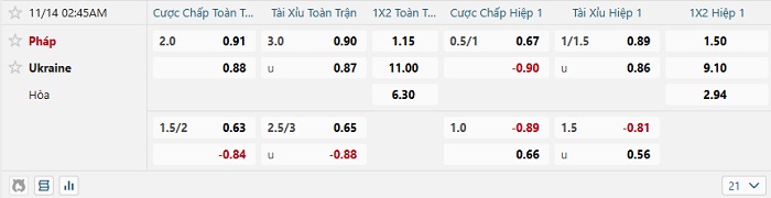 Tip kèo Châu Á hiệp 1 Pháp vs Ukraine