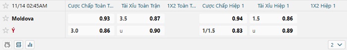 Tip kèo Châu Á full trận Moldova vs Ý