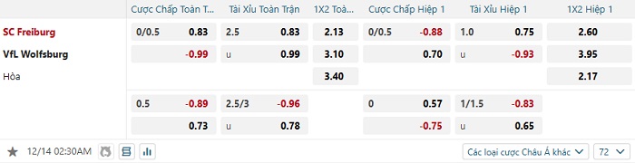 Tip kèo Châu Á full trận Freiburg vs Wolfsburg