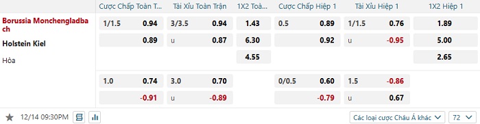 Tip kèo Châu Á hiệp 1 Monchengladbach vs Holstein Kiel