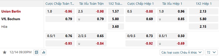 Tip kèo Châu Á hiệp 1 Union Berlin vs Bochum