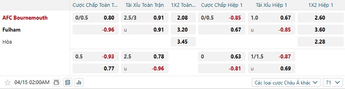 Tip kèo Châu Á full trận Bournemouth vs Fulham