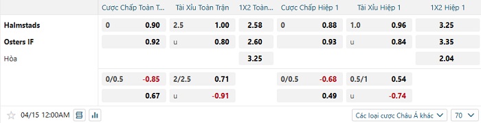 Tip kèo Châu Á full trận Halmstads vs Osters