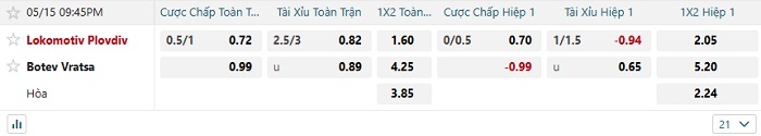 Tip kèo Châu Á full trận Lokomotiv Plovdiv vs Botev Vratsa