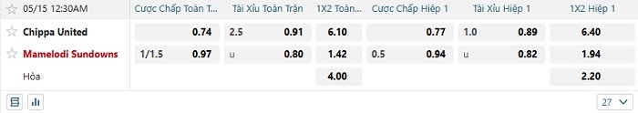 - Dự đoán tỷ số hiệp 1: Chippa United 0 – 1 Mamelodi Sundowns