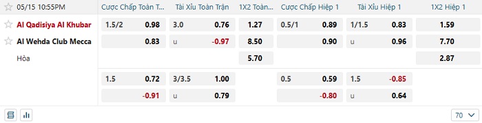 Tip kèo Châu Á hiệp 1 Al Qadisiya vs Al Wehda