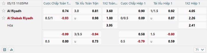 - Tip kèo cá cược Châu Á hiệp 1: Chọn Al Riyadh +1/4
