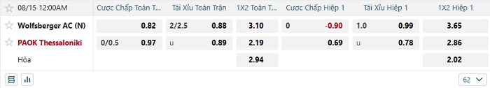 Tip kèo Châu Á hiệp 1 Wolfsberger vs PAOK