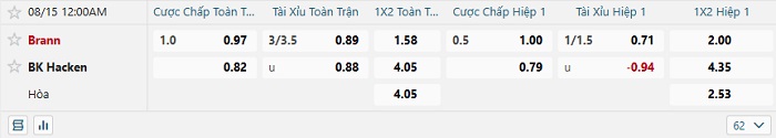 Tip kèo Châu Á hiệp 1 Brann vs Hacken