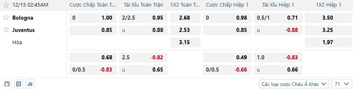 Tip kèo Châu Á full trận Bologna vs Juventus
