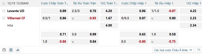 Tip kèo Châu Á full trận Levante vs Villarreal