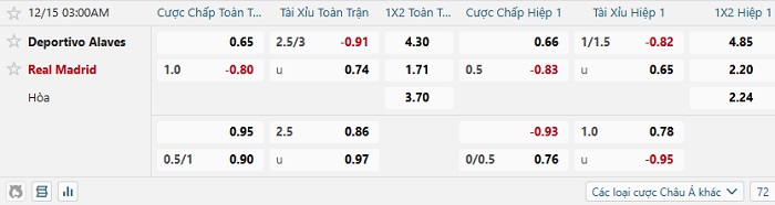 Tip kèo Châu Á full trận Alaves vs Real Madrid