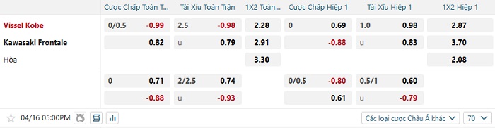 Tip kèo Châu Á full trận Vissel Kobe vs Kawasaki Frontale