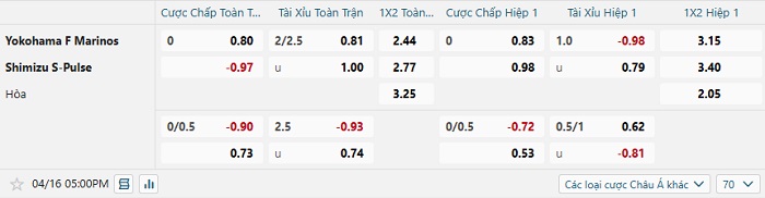 Tip kèo Châu Á hiệp 1 Yokohama Marinos vs Shimizu S-pulse