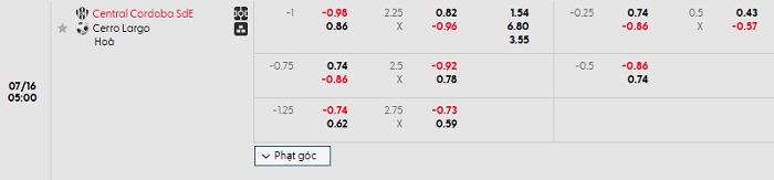 Tip kèo Châu Á full trận Central Cordoba vs Cerro Largo