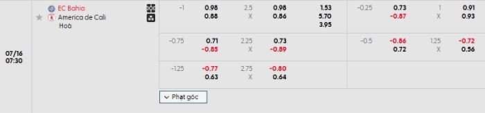 Tip kèo Châu Á full trận Bahia vs America de Cali
