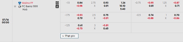Tip kèo Châu Á hiệp 1 Malmo vs FC Iberia