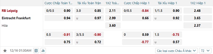 Tip kèo Châu Á hiệp 1 Leipzig vs Frankfurt