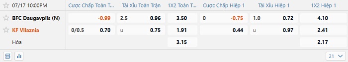 Tip kèo Châu Á full trận BFC Daugavpils vs KF Vllaznia