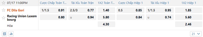 Tip kèo Châu Á full trận Dila Gori vs Racing Union Luxembourg