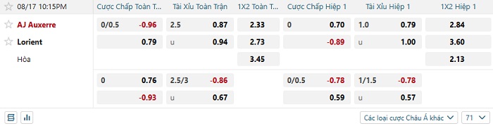 Tip kèo Châu Á full trận Auxerre vs Lorient