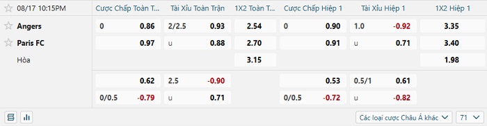 Tip kèo Châu Á hiệp 1 Angers vs Paris FC