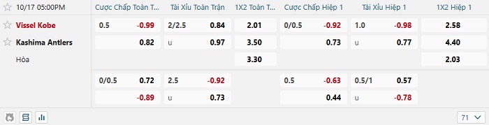 Tip kèo Châu Á hiệp 1 Vissel Kobe vs Kashima Antlers