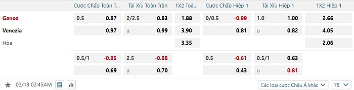Tip kèo Châu Á full trận Genoa vs Venezia