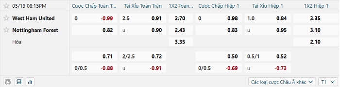 Tip kèo Châu Á full trận West Ham vs Nottingham