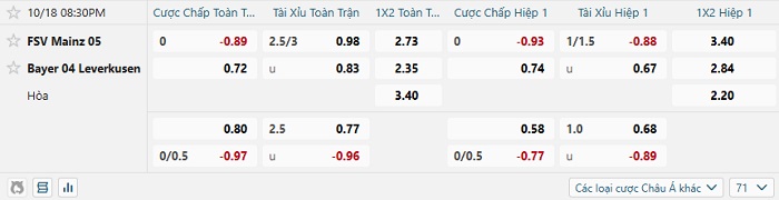 Tip kèo Châu Á hiệp 1 Mainz vs Bayer Leverkusen