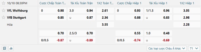 Tip kèo Châu Á full trận Wolfsburg vs Stuttgart