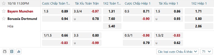 Tip kèo Châu Á hiệp 1 Bayern Munich vs Dortmund