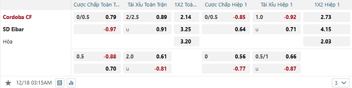Tip kèo Châu Á full trận Cordoba vs Eibar
