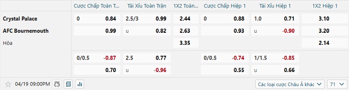 Tip kèo Châu Á hiệp 1 Crystal Palace vs Bournemouth