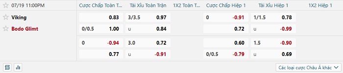 Tip kèo Châu Á hiệp 1 Viking vs Bodo Glimt